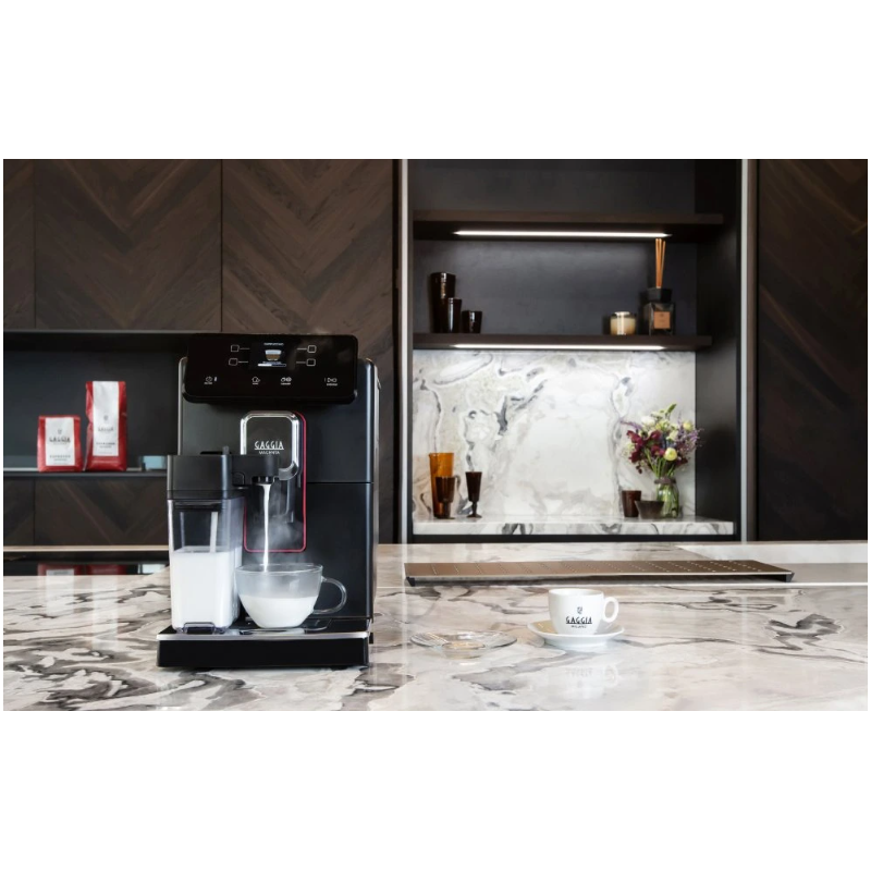 Kávovar přichází se dvanácti přednastavenými recepty s možností modifikace výdejní teploty, dávkování kávy, množství vody či množství mléčné pěny. Pracovní plocha je vybavena nerezovou odkapávací mřížkou a posuvnou výdejní jednotkou, jež umožňuje použití šálků vysokých až 150 mm. Vzduchotěsné víko Aroma lid zamezuje oxidaci uložených kávových zrn.