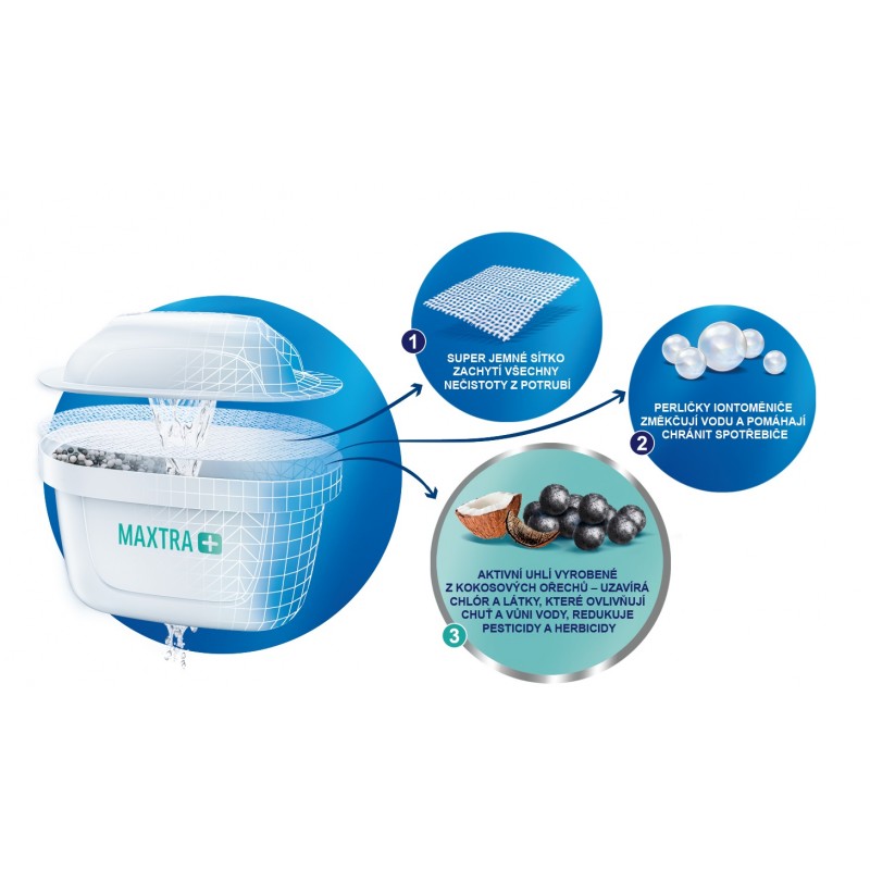 16 ks Filtrů BRITA Maxtra + Díky unikátní Maxtra 4-stupňové filtraci dosahují o 20% vyšší účinosti snižování obsahu vodního kamene.
