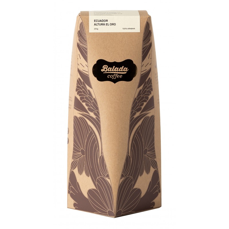 Konkrétně jsme vybrali vysokohorskou výběrovou 100% arabiku z provincie ''El Oro''. Tato prémiová arabika vyniká svým bohatým plným tělem s podtóny květin, jemnou aciditou a vynikajícím aroma. Ekvádorská provincie "El Oro" je nejjižnější pobřežní provincií země. Jméno provincie vzniklo na základě historicky významné produkce zlata a dnes je kromě své produkce banánů vyhlášená také pro svojí osobitou a prémiovou kávu druhu arabika. Pro tuto kávu jsme zvolili středně tmavé pražení, které nabízí nejlepší rovnováhu mezi ovocitou a aciditou.